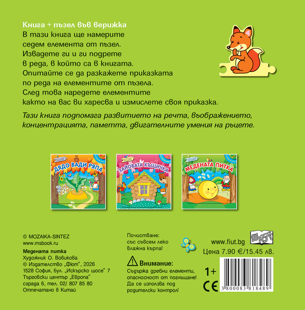 Подпомагат развитието на речта, въображението, концентрацията, паметта, двигателните умения на ръцете. Всяка книга съдържа седем елемента от пъзел.Извадете ги и ги подредете в реда, в който са в книгата. Опитайте се да разкажете приказката по реда на елементите от пъзела. След това наредете елементите както на вас ви харесва и измислете своя приказка.