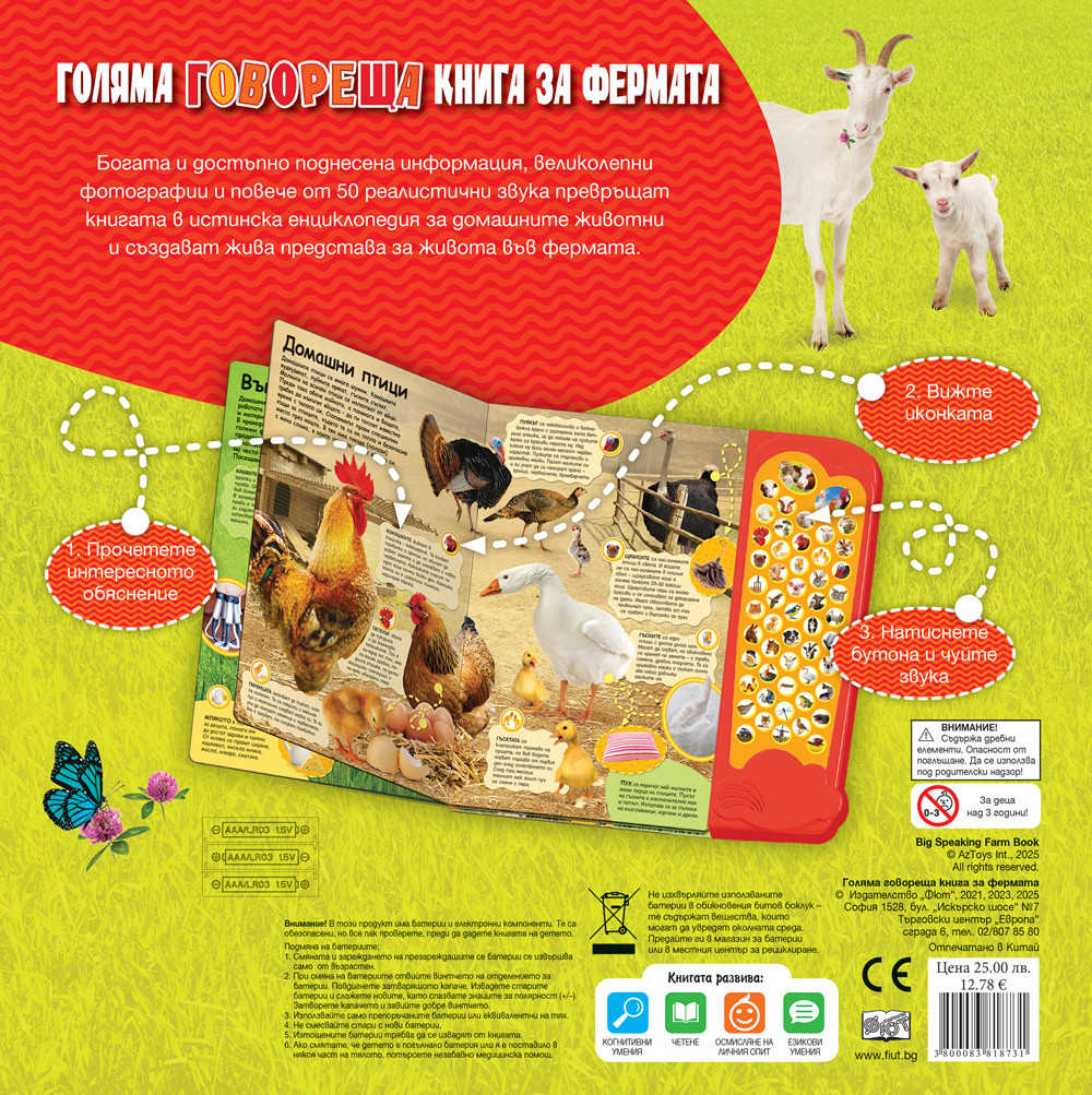 Богата и достъпно поднесена информация, великолепни фотографии и повече от 50 реалистични звука превръщат книгата в истинска енциклопедия за домашните животни и създават жива представа за живота във фермата. - Допълнителна информация