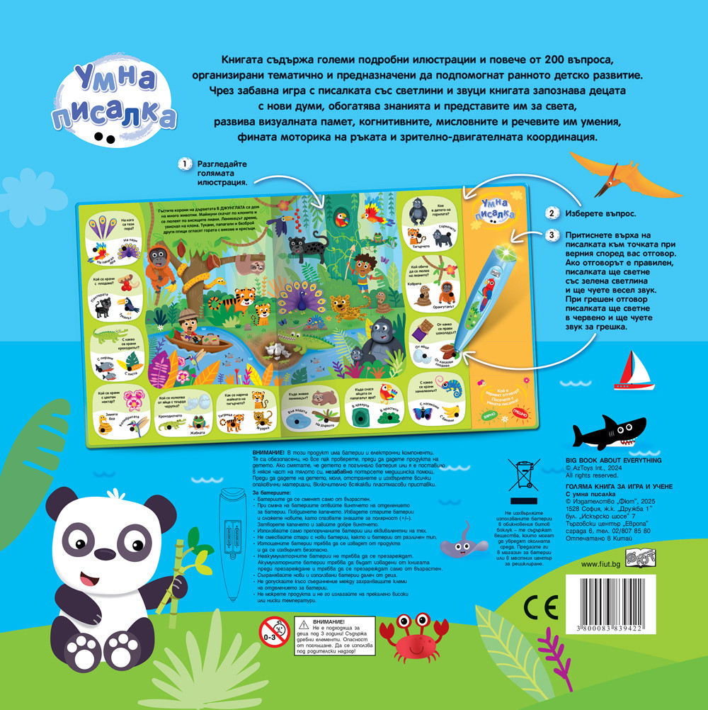 Възраст 4, 6 Страници 38 Формат 343х326 Техническа характеристика цветна, твърди корици + умна писалка със сменящи се батерии