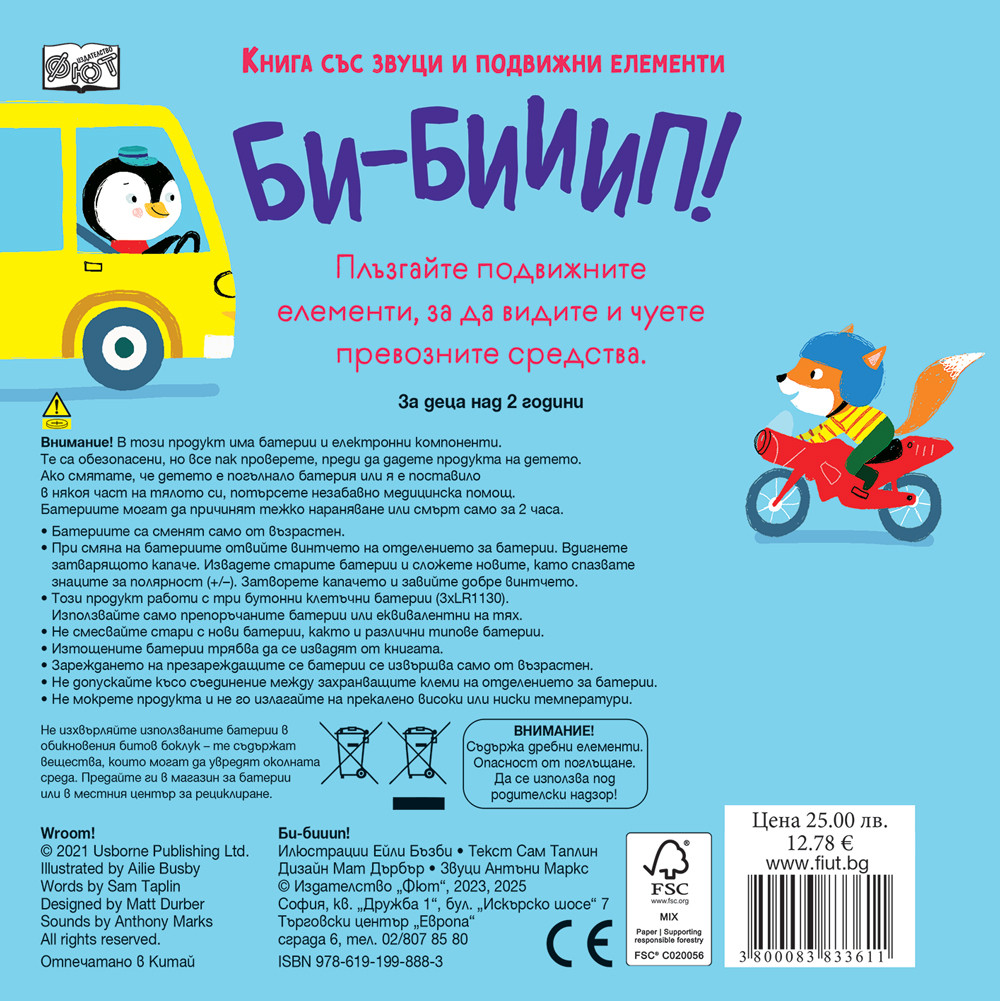 Възраст 2, 3 Страници 10 Техническа характеристика цветна, картонена, с подвижни елементи, сменящи се батерии