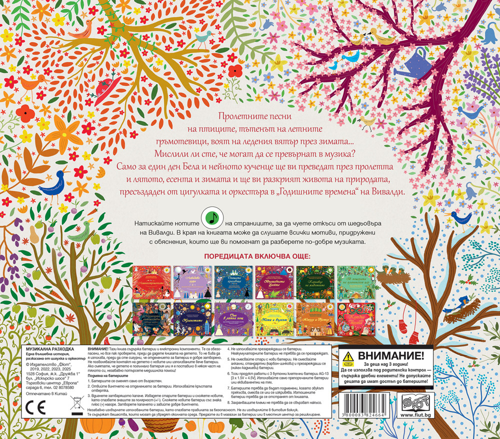 Натискайте нотите на страниците, за да чуете откъси от шедьовъра на Вивалди. В края на книгата може да слушате всички мотиви, придружени с обяснения, които ще ви помогнат да разберете по-добре музиката.