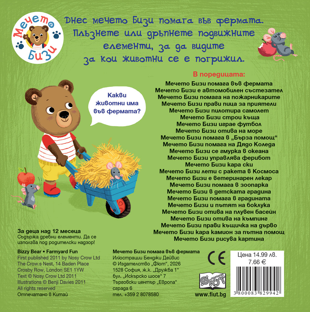 Възраст 2, 5 Страници 8 Формат 180х180 Техническа характеристика цветна, картонена, с разнообразни подвижни елементи на всеки разтвор