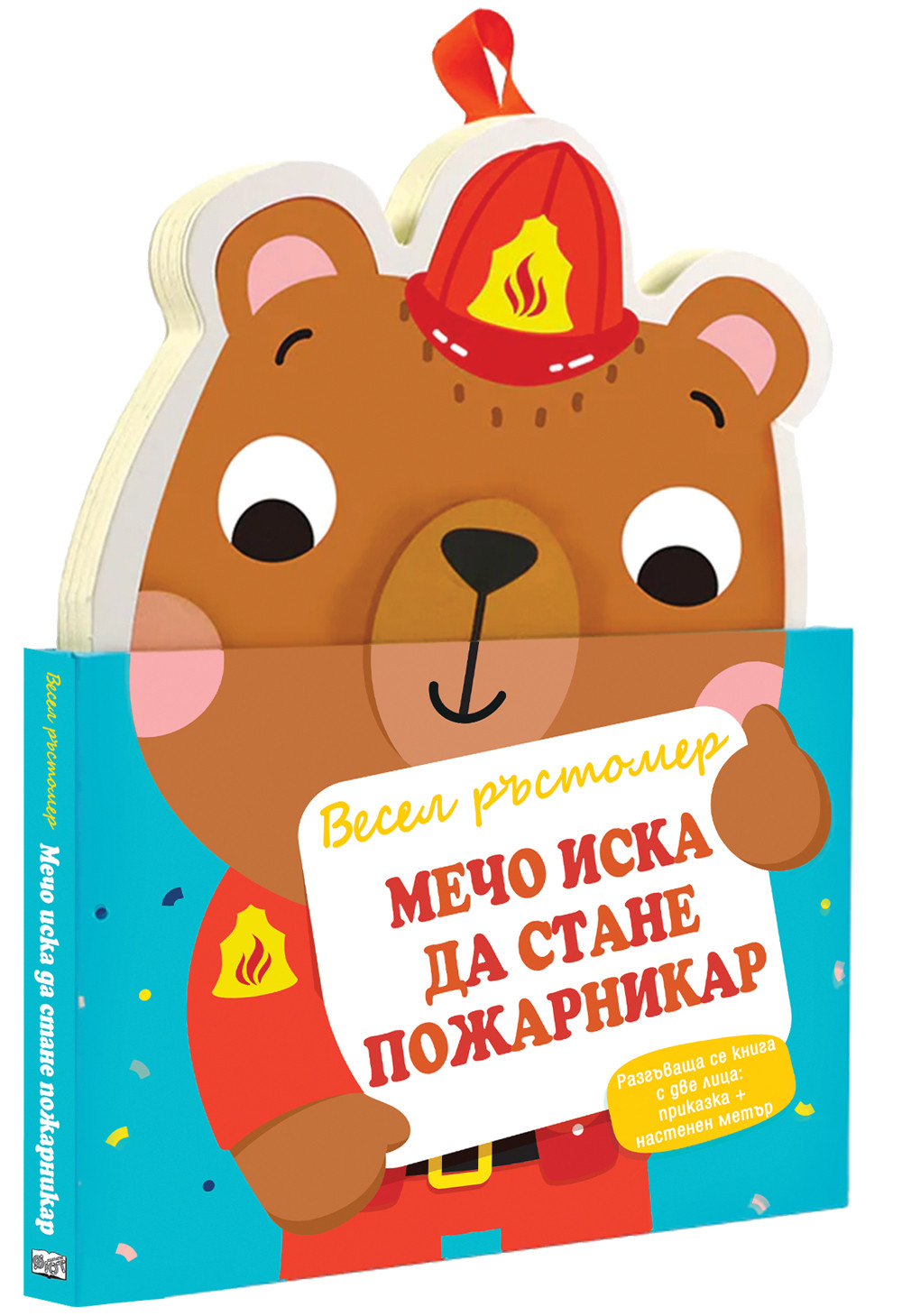 Втората страна е настенен метър, който може да е  много симпатична украса за детската стая. Може да се окачи на стената или вратата на разстояние 60 см от пода. Детето с радост ще мери височината си и ще иска бързо-бързо да достигне до смелия пожарникар Мечо.