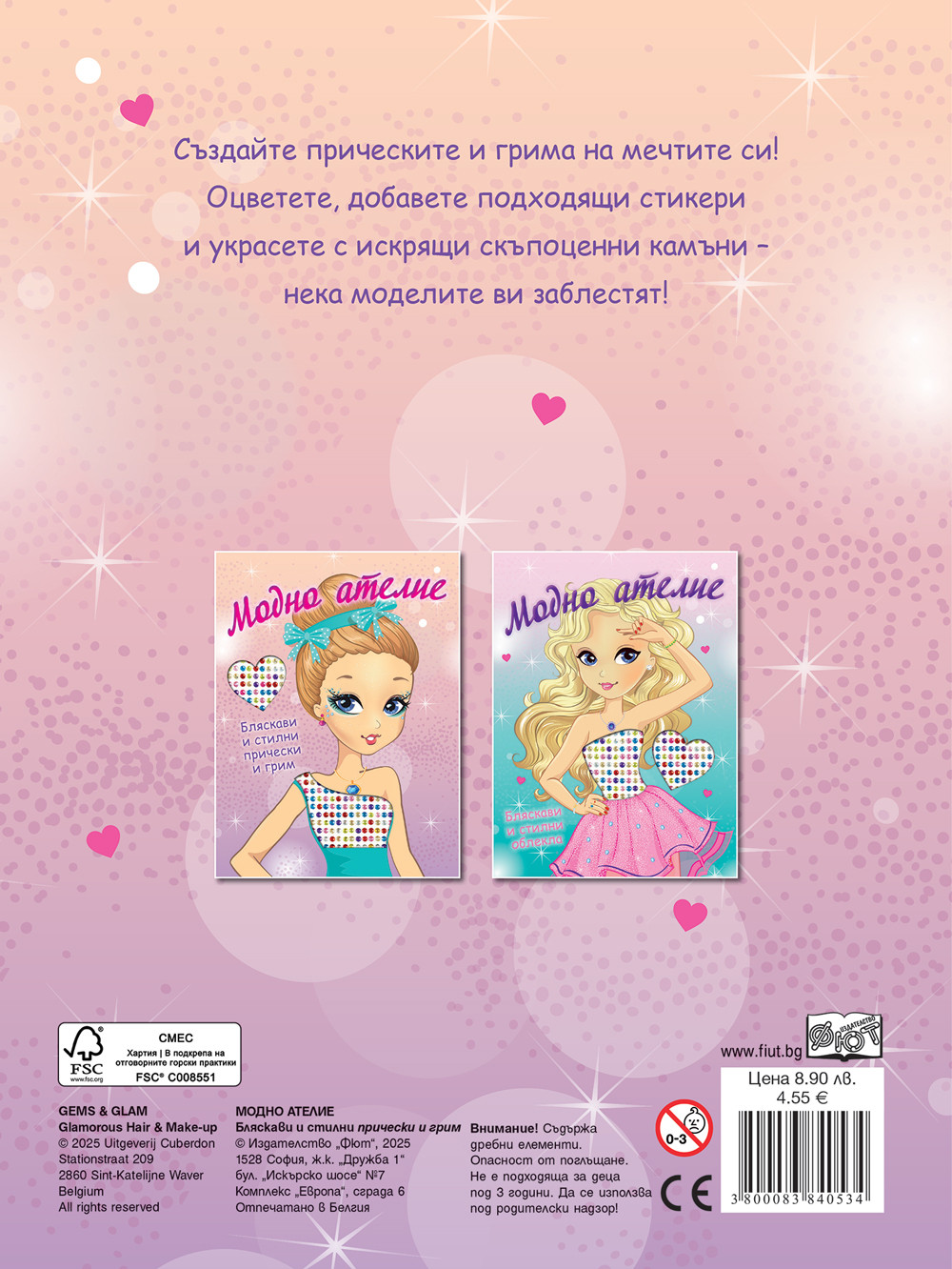 Създайте роклите, прическата и грима на мечтите си! Оцветете, добавете подходящи стикери и украсете с искрящи скъпоценни камъни – нека моделите ви заблестят!