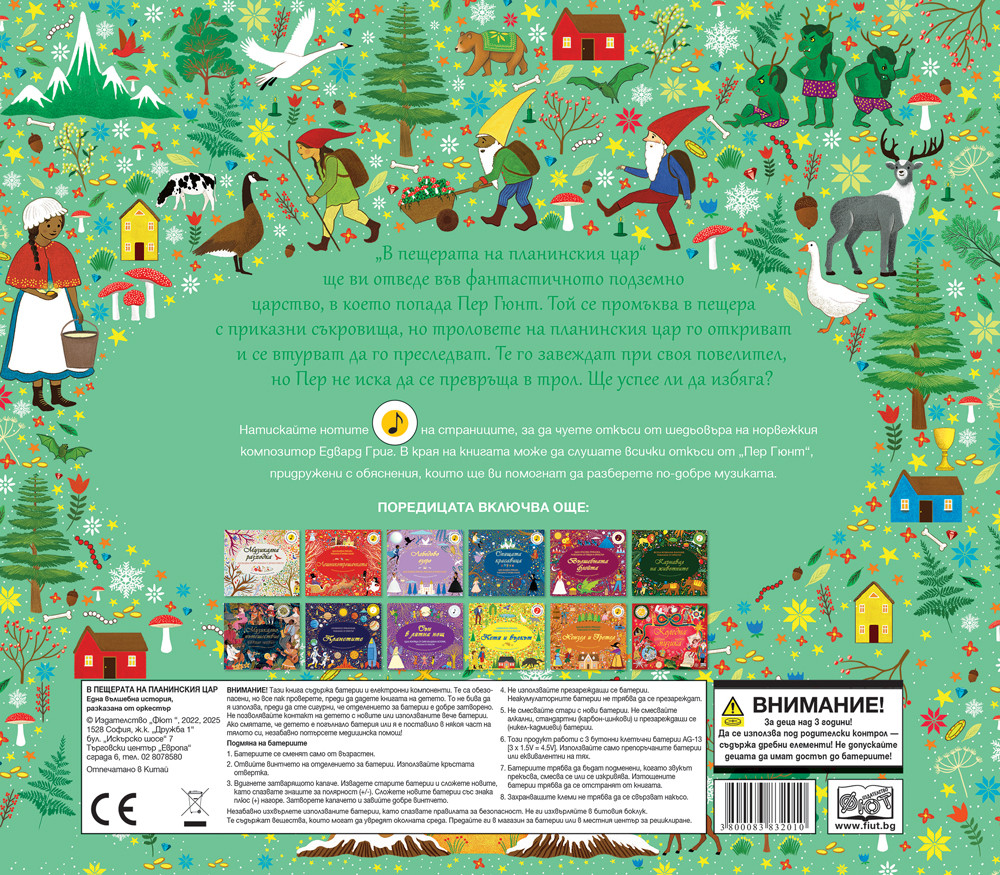 Натискайте нотите на страниците, за да чуете откъси от шедьовъра на норвежкия композитор Едвард Григ. В края на книгата може да слушате всички откъси от „Пер Гюнт“, придружени с обяснения, които ще ви помогнат да разберете по-добре музиката.
