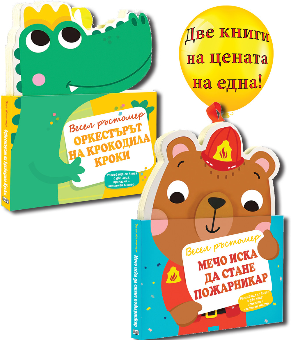 На едната страна е разказана веселата история на крокодила Кроки и неговия оркестър. Втората страна е настенен метър, който може да е много симпатична украса за детската стая. Може да се окачи на стената или вратата на разстояние 60 см от пода. Детето с радост ще мери височината си и ще иска бързо-бързо да достигне и надмине животните от джунглата.