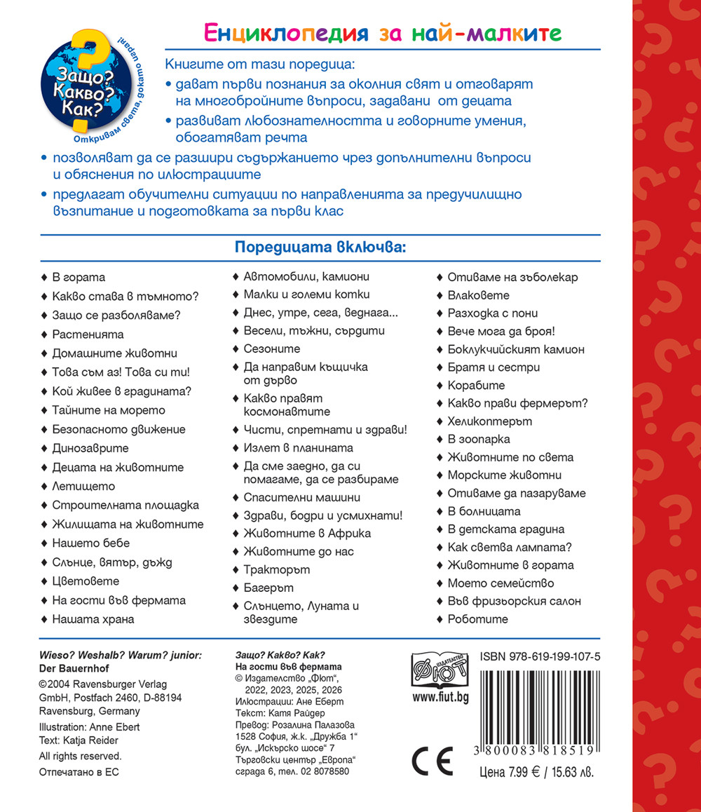 Възраст 2, 6 Страници 16 Формат 180х195 Техническа характеристика цветни, картонени, твърди корици + капачета