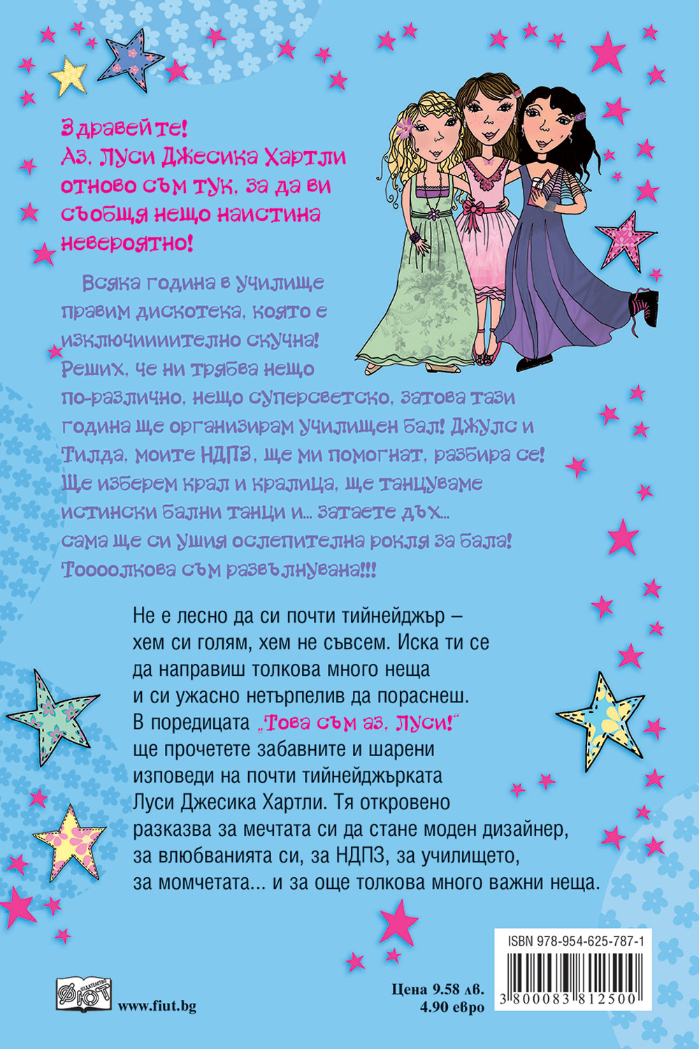 Здравейте! Аз, Луси Джесика Хартли, отново съм тук, за да ви съобщя нещо наистина невероятно! Всяка година в училище правим дискотека, която е изключиииително скучна! Реших, че ни трябва нещо по-различно, нещо суперсветско, затова тази година ще организирам училищен бал! Джулс и Тилда, моите НДПЗ, ще ми помогнат, разбира се! Ще изберем крал и кралица, ще танцуваме истински бални танци и... затаете дъх... сама ще си ушия ослепителна рокля за бала! Тоооолкова съм развълнувана!!!