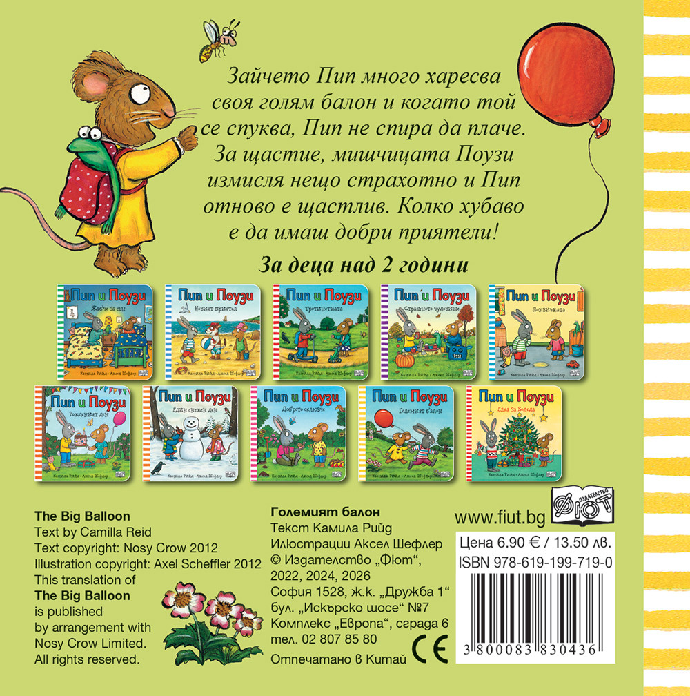 Зайчето Пип много харесва своя голям балон и когато той се спуква, Пип не спира да плаче. За щастие, мишчицата Поузи измисля нещо страхотно и Пип отново е щастлив. Колко хубаво е да имаш добри приятели!