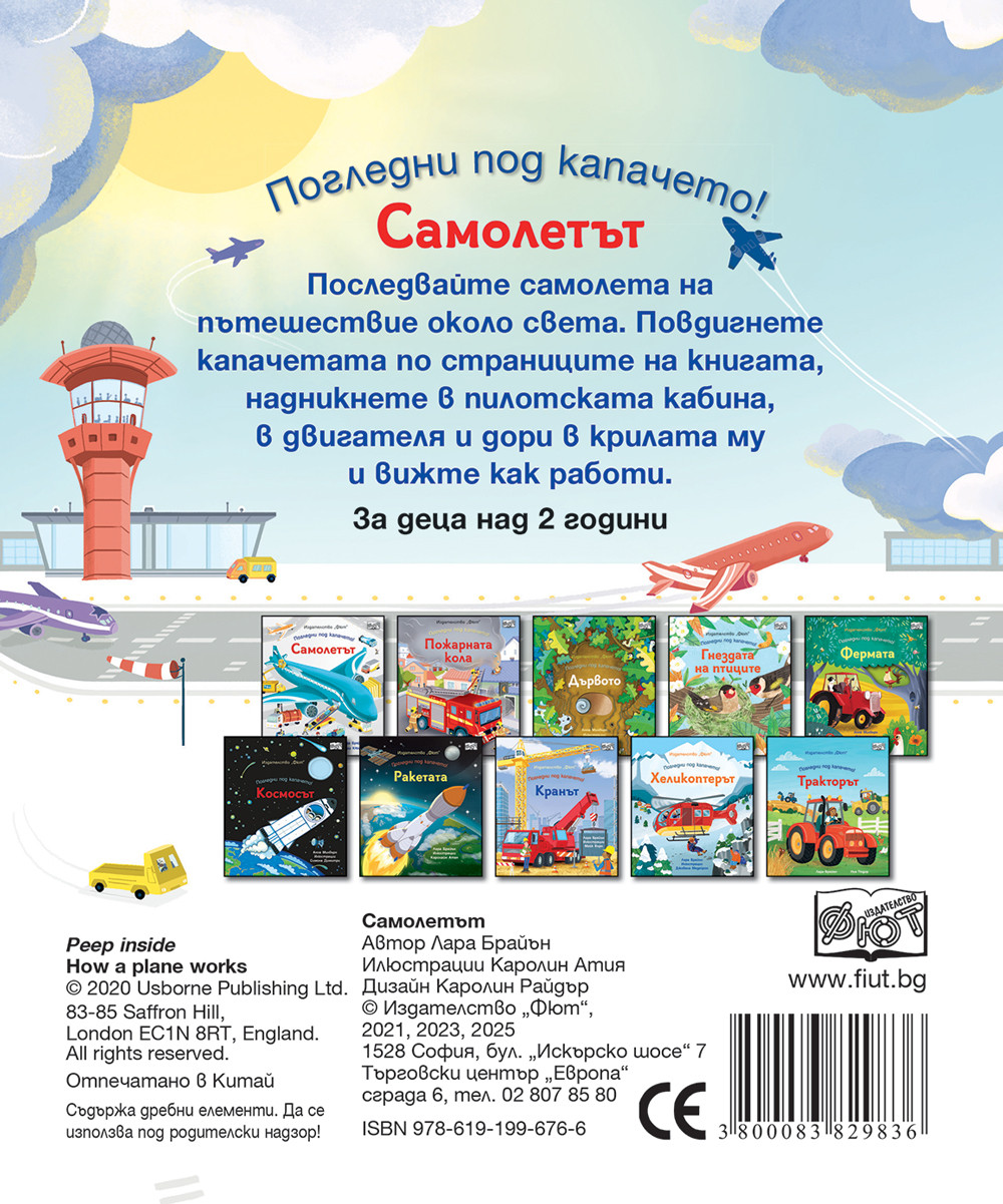 Последвайте самолета на пътешествие около света. Повдигнете капачетата по страницитe на книгата, надникнете в пилотската кабина, в двигателя и дори в крилата му и вижте как работи.
