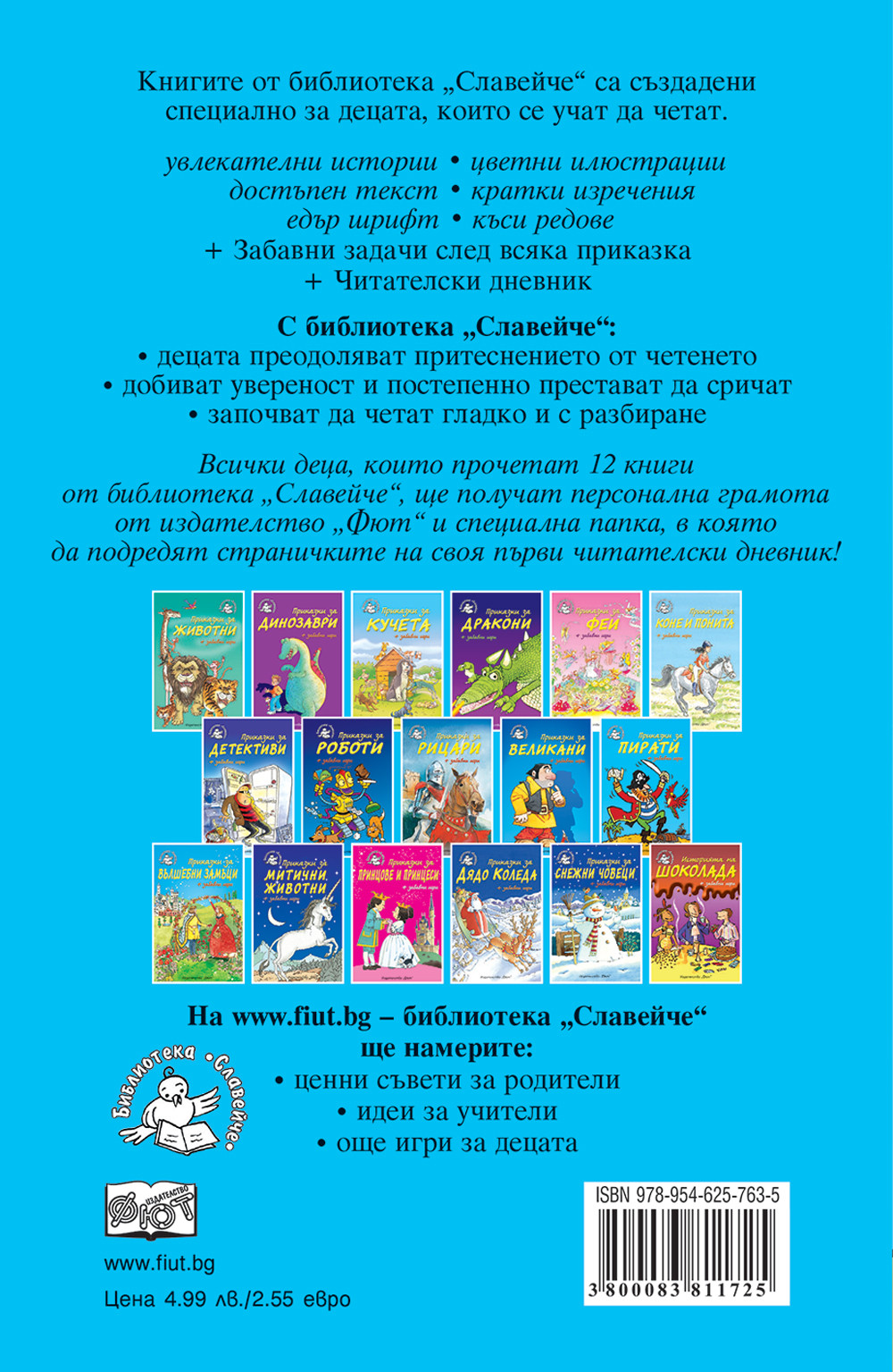 - Всички книги от библиотека „Славейче” съдържат талон с номер – при събиране на 12 талона, децата печелят персонална грамота от издателство „Фют” за най-добър читател и специална папка, в която да подредят страничките на своя първи читателски дневник.