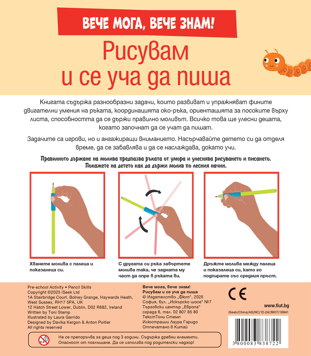 Възраст 3, 4 Страници 96 Формат 220х250 Техническа характеристика цветна + молив, който децата лесно ще държат