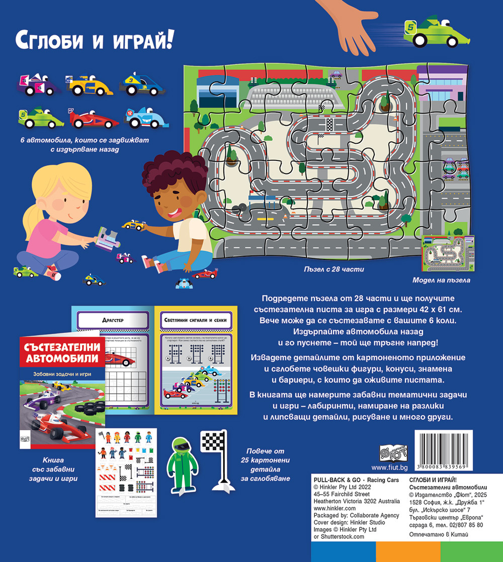 • Пъзел с 28 части – състезателна писта/жп гара за игра с размери 42 x 61 см.