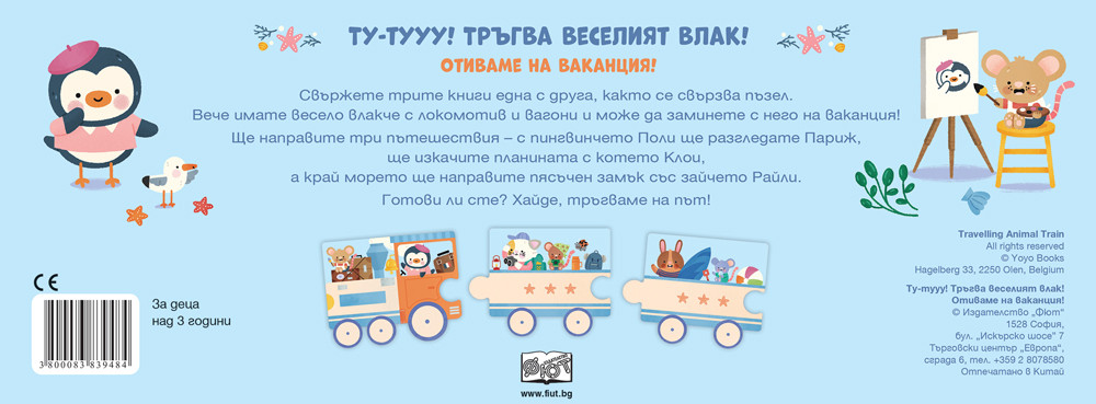 Възраст 2, 4 Страници 12 Формат кутия: 325х124х20 мм, книжки: 100х100 мм Техническа характеристика цветни, картонени, щанцовани като елементи на пъзел